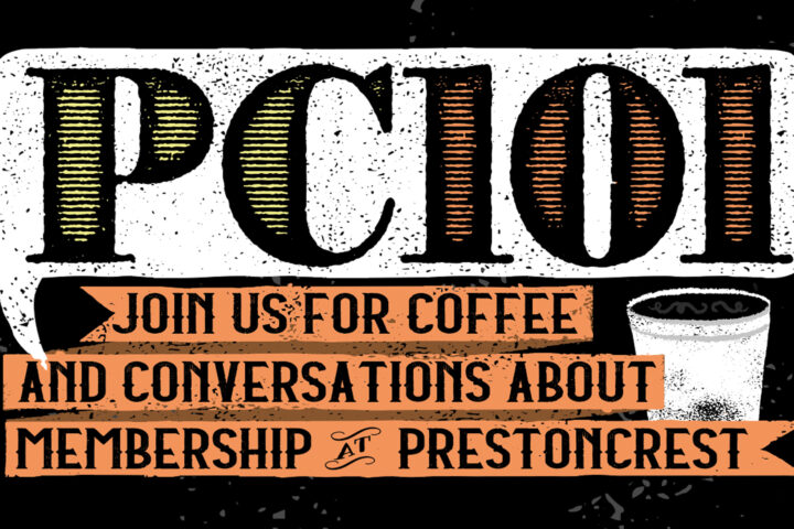 Coffee & conversations What does it look like to be a part of the community at Prestoncrest? PC101 is our semi-regular workshop where you’ll learn all about Prestoncrest’s membership, history, – where we’ve been and where we feel God taking us.