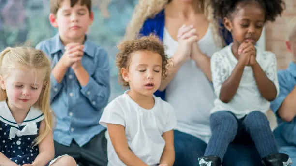 Children spend time singing together, as well as hearing a lesson from the Bible pertaining to the month’s virtue. Children practice their monthly memory verse as a group and end the time in prayer. Chapel is also a special time for our Chapel teacher to recognize individual birthdays and achievements.